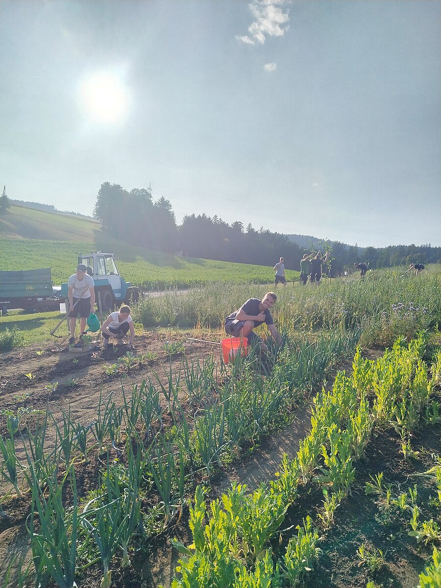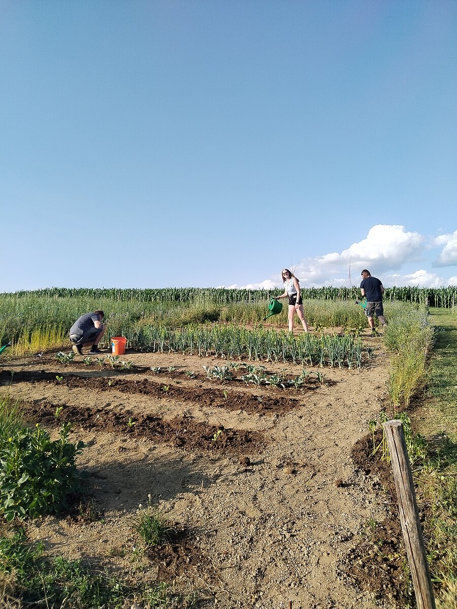 Jeden dritten Donnerstag im Monat findet ein Gartltreff statt, wo sich alle am Acker treffen. Unkraut jäten, gießen und einfach die Gemeinschaft genießen.